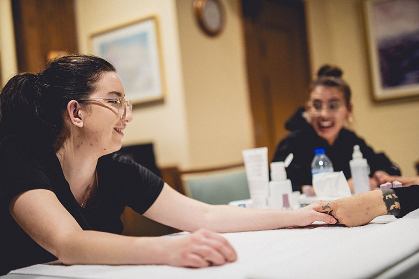 The house of Le Chaînon appears in the veiled Montreal sky like a huge ship, firmly anchored on the Plateau Mont-Royal. A small team of massage therapists and beauticians meet on this gray November day to give a few hours of tenderness and respite to the residents of this shelter.