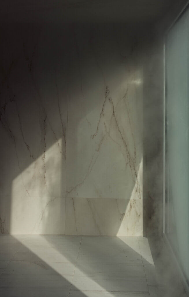 Les hammams, enveloppés de pierres sombres et de surfaces minérales, contrastent par leur atmosphère moite et feutrée. Ici, la matière devient presque liquide, diluée dans la vapeur. Les murs perlent, les sons se fondent. La pierre absorbe, conserve, redistribue lentement la chaleur, contribuant à cette sensation d’immersion totale. On entre dans le hammam comme dans un nuage dense, un espace sans contours, propice à la dissolution des tensions.