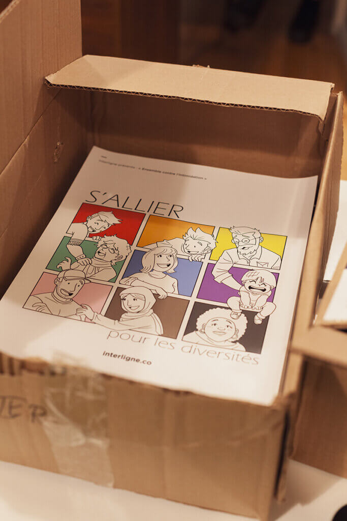 Lors de cette demi-journée de bénévolat, les employés du Bota Bota ont aidé à regrouper du matériel qu’Interligne utilise pour la sensibilisation dans les écoles et centres communautaires, « Plus ont fait parler de nous, plus on a des demandes pour ce genre de matériel », se réjouit Jade. Ils ont aussi assemblé des documents remis à des participants au lancement d’un sondage canadien sur la santé mentale de la population LGBTQ+ vs non LGBTQ+.