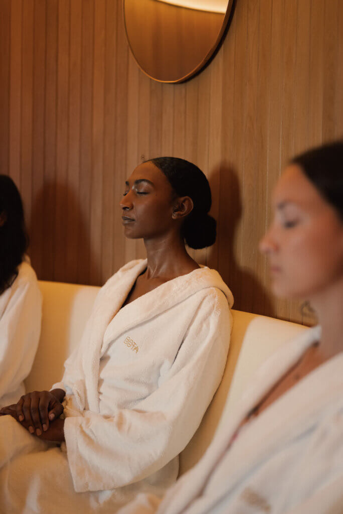 - Vanessa DL est autrice et enseignante de yoga. Elle offre un exercice de visualisation dans le sauna ainsi qu’une méditation guidée axée sur la gestion du stress pour la portion détente du circuit.